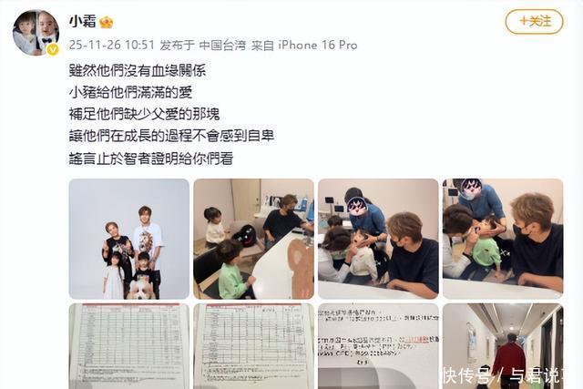 26号早上,小霜估计是彻底被气炸了,直接发了一条超长微博。 先放了一堆小猪带着两个孩子玩的日常照,游乐园、运动会、过生日,哪哪都是小猪抱着娃亲亲抱抱举高高。 重头戏来了,她把罗志祥和两个孩子一起去医院抽血看牙的照片也放出来了。