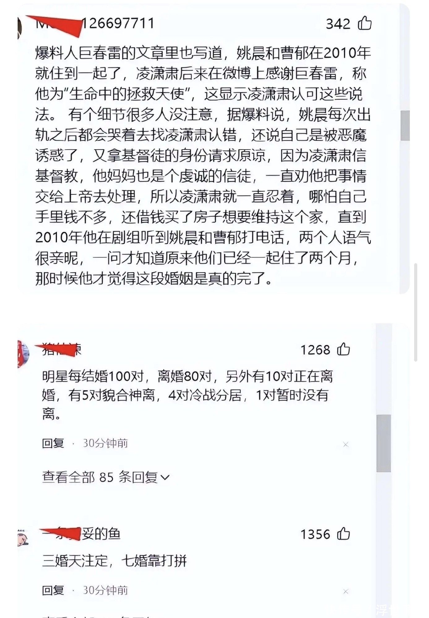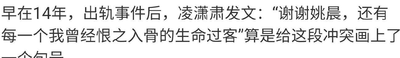 本以为事件就此定格,2014年,凌潇肃密友巨春雷突然发布万字长文《姚晨和凌潇肃那段被改写的过往》。